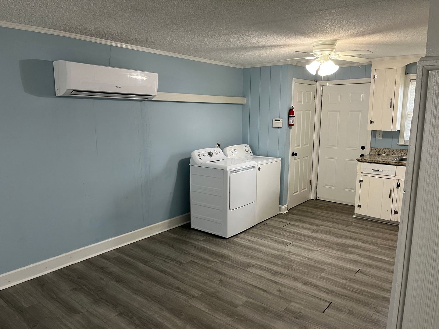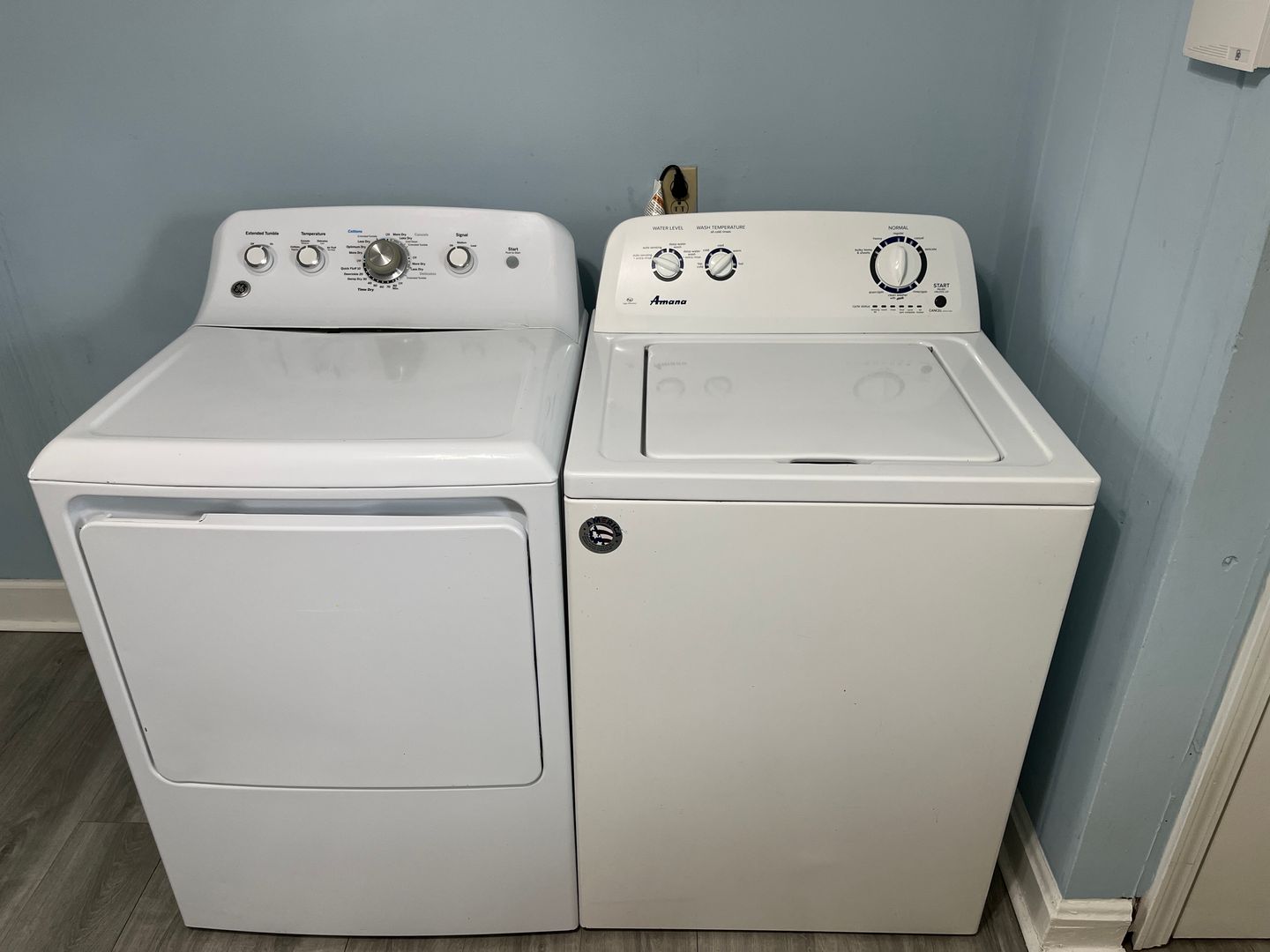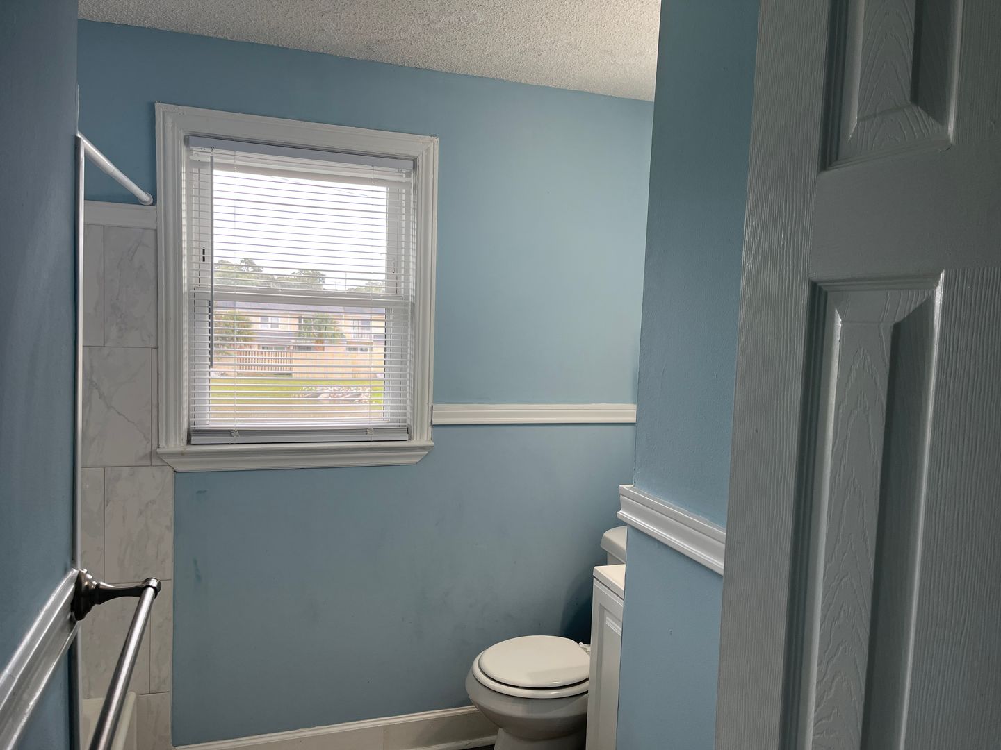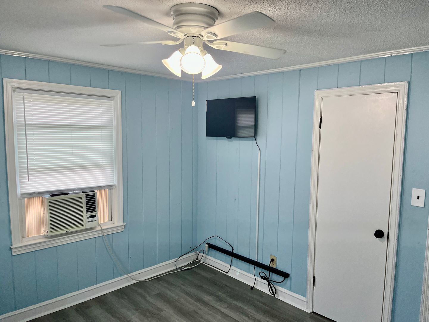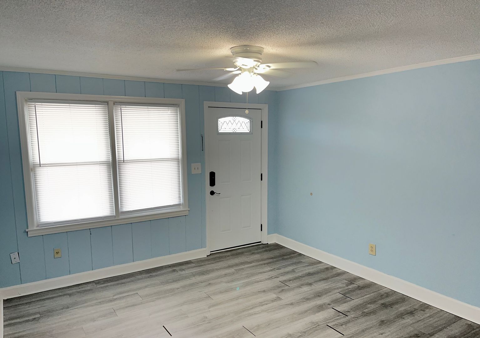 Landlord is offering one-month free with an eighteen-month lease. Walk to the beach! Two-bedroom, one-bathroom condo on the second floor is only two blocks from the beautiful ocean. The unfurnished unit features an open floor plan, including a kitchen, dining area, and living room, with hard surface floors and ceiling fans throughout. The kitchen features charming white cabinets, a window over the sink, a refrigerator, and a stove. A washer and dryer are included in the unit and are provided as-is. Enjoy the shade with an iced tea on the covered front or back porch. The yard has picnic tables and a mounted grill for enjoyment as well. A twelve-month lease is also available.