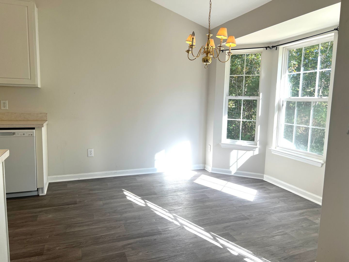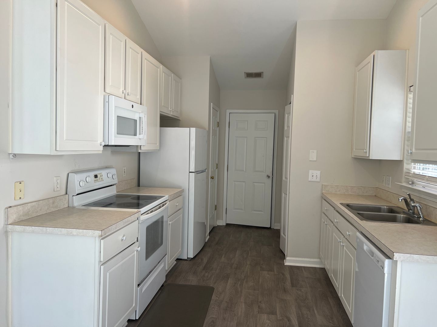 Spacious unfurnished, pet-friendly, single-family home on a cul-de-sac in a fabulous community! This roomy three-bedroom, two bathroom home provides approximately 1,600 sq feet and is located in one of Carolina Forest's premier communities of Southgate. Home features vaulted ceilings and hard-surfaced flooring throughout the common areas. The kitchen is equipped with white cabinets, food pantry, a smooth-top stove, over-the-range microwave, a dishwasher, and a refrigerator. The dining area with bay windows looks out to the backyard that runs along a wooded preservation. A concrete patio offers space to relax and entertain. The attached two-car garage adds additional storage space for gear and vehicles. The primary bedroom has a walk-in closet and private bathroom with walk-in shower and a separate garden tub. Home is pet-friendly for a maximum of two small pets, cats or dogs weighing less than 25 lbs each. Breed restrictions do apply. Home has washer and dryer hook ups. This home is available to rent now!