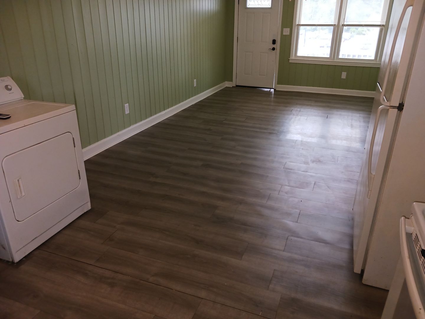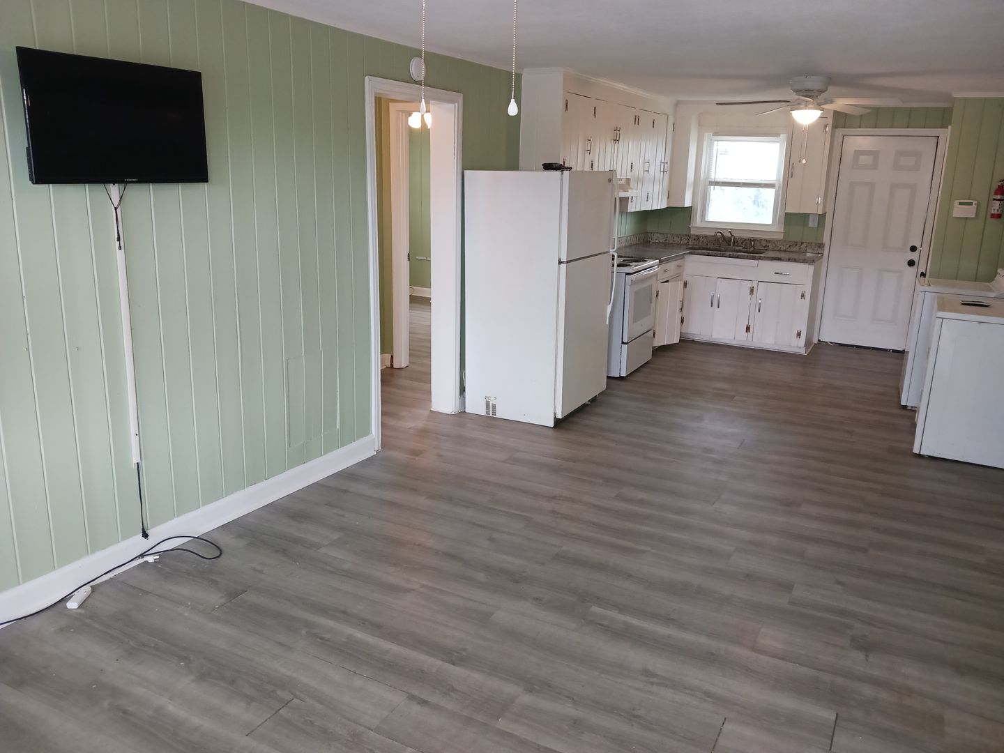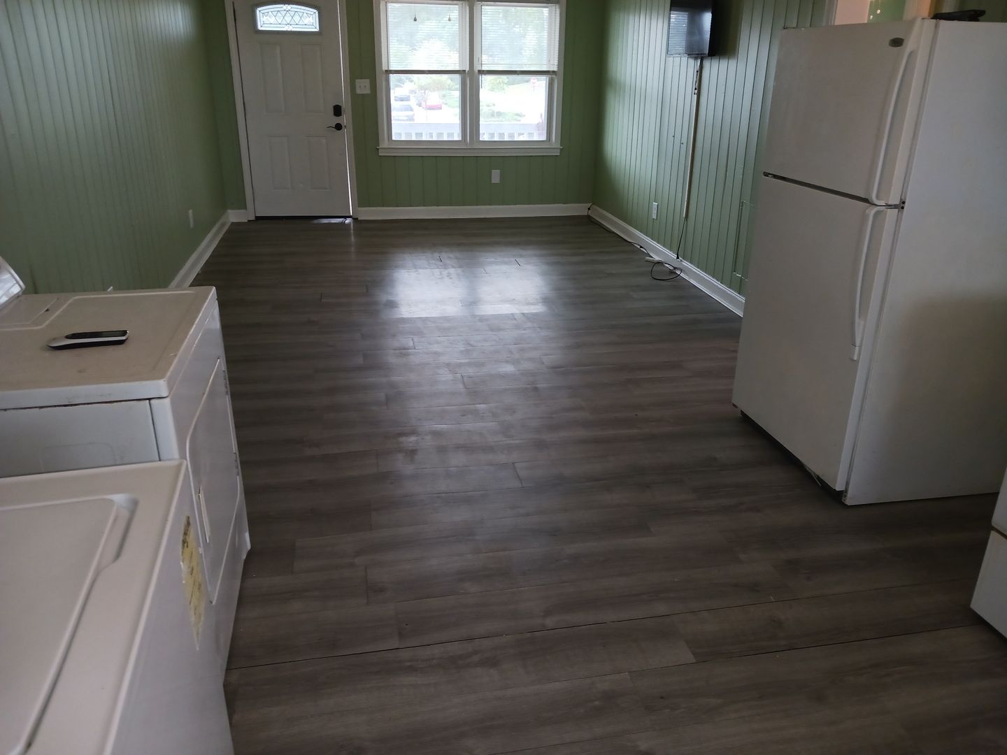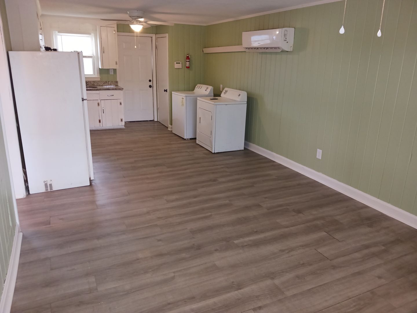 Landlord is offering one-month free with an eighteen-month lease. Just a short stroll from having your toes in the warm sand! Second floor, two bedroom, one bathroom condo is only two blocks from the beach. The unfurnished unit features an open floor plan kitchen, dining, and living room with hard surface floors and ceiling fans throughout. Kitchen features rustic white cabinets, window over the sink, refrigerator, and stove. Washer and dryer are included in the unit and provided as-is without warranty for repair or replacement. Enjoy the sun and shade on the covered front and back porch. Please call 843-281-0220 to arrange a viewing. Applications can be completed on our website. Approved applicants must view the unit prior to lease signing. A twelve-month lease is also available.