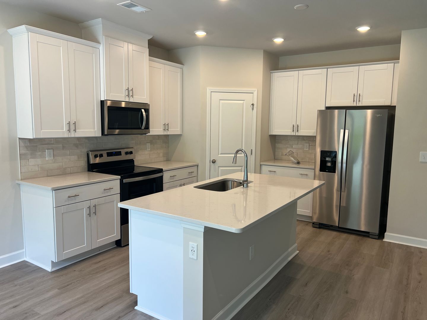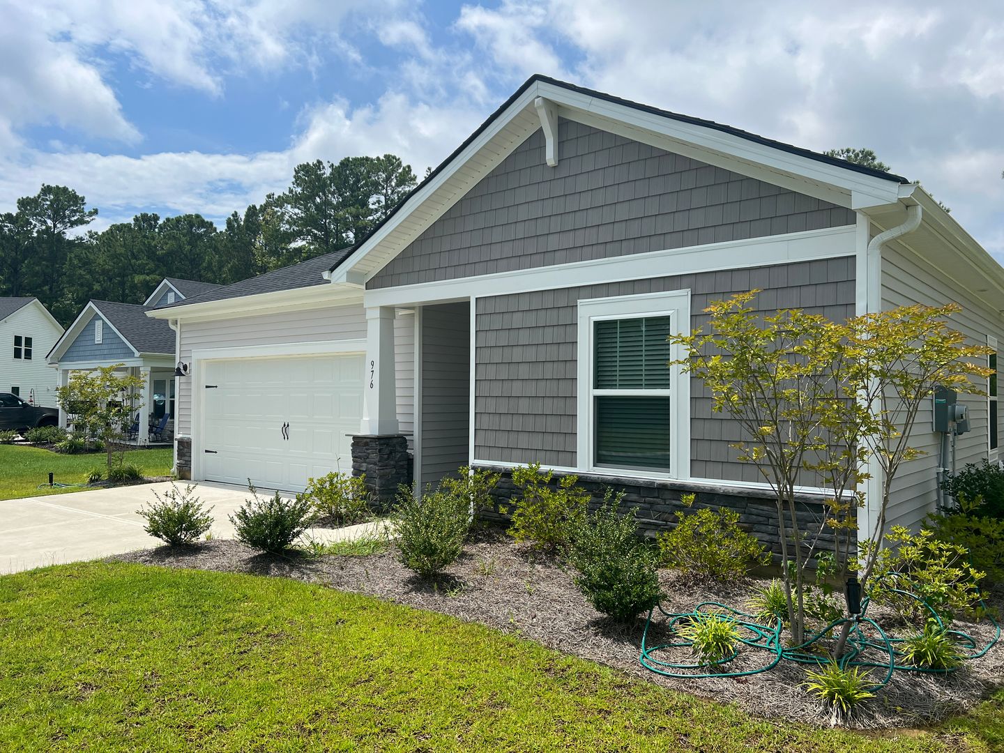Three-bedroom, two-bath, unfurnished house, is now available for rent at Creekside Point in Little River. This beautiful home is like-new, is approximately 1,500 square feet, and is move-in ready. Kitchen features modern white cabinetry, tile backsplash, pantry, island with sink, dishwasher, and counter seating. Stainless steel appliances include a side-by-side refrigerator, a smooth-top stove, an over-the-range microwave, and a dishwasher. Enjoy vinyl-plank flooring in the main living areas and carpet in the bedrooms for comfort. Primary bedroom has tray ceiling, walk-in closet, and a private bathroom with tiled shower with glass door. There are two additional bedrooms and full bathroom with a sink, toilet, and combination tub/shower. Enjoy the Grand Strand weather on the patio that overlooks the rear yard. Two-car garage provides additional space for vehicles and all the gear that makes life fun. A community pool is available for your enjoyment. Two pets under twenty-five pounds are permitted. A pet fee and breed restrictions apply. The home is available to view and rent now!