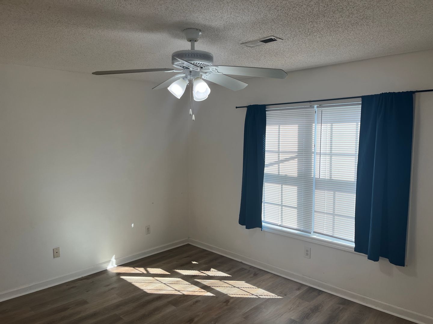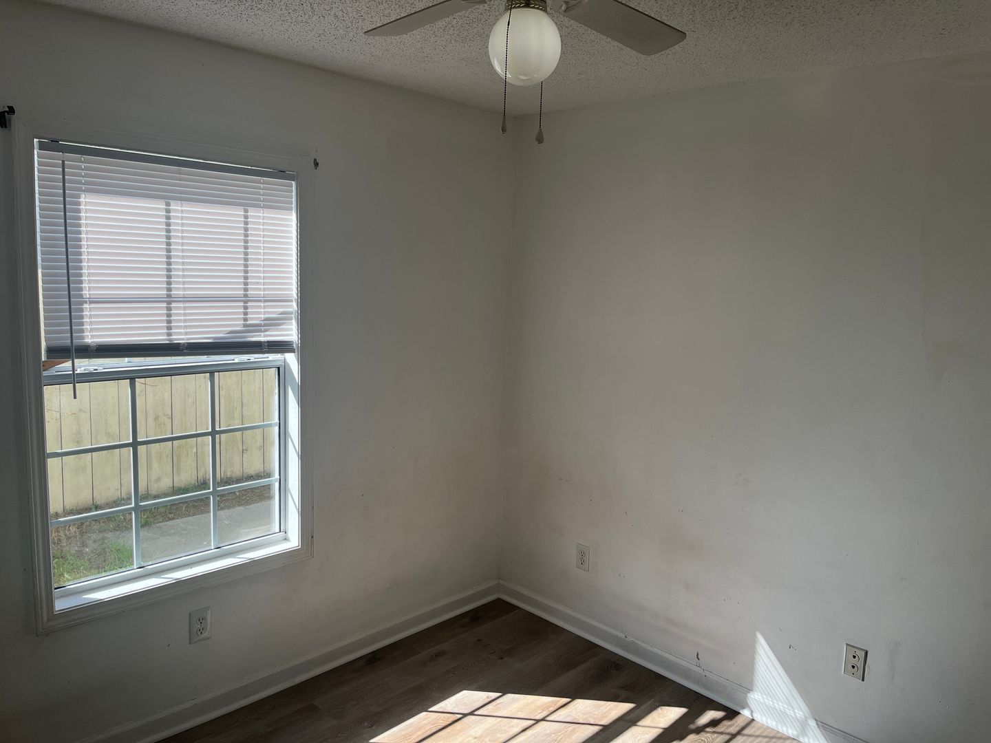 This unfurnished three-bedroom, two-bathroom duplex is located on Barberry Drive in the College Park subdivision. The kitchen features white cabinets, appliances, and countertops, as well as natural light from the window over the double sink for a clean, crisp inviting space. It's equipped with all major appliances, including a stove, refrigerator, and dishwasher. The home has washer and dryer hookups. Open floor plan living room and dining area has sliding glass doors that lead out to a partially fenced in back yard with patio which is fantastic for enjoying time with your pet. The bedrooms each have ceiling fans for added comfort. The duplex has its own driveway and sidewalk and a covered front porch where you can sit and enjoy the day.