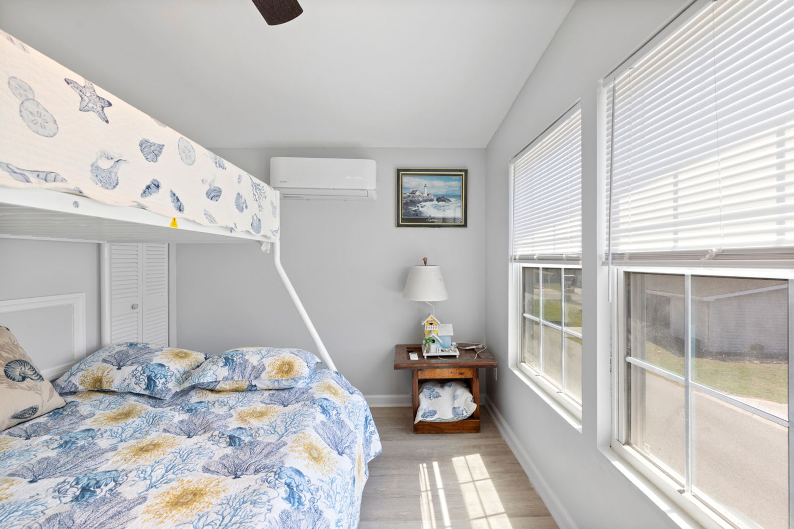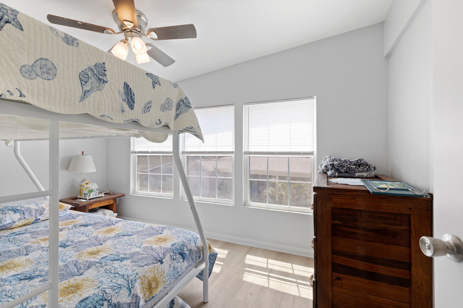 The property has four bedrooms that all feature televisions and close proximity to the bathrooms. The master bedroom features a king-size bed. Bedrooms two and three both have a queen size bed, and the fourth bedroom has bunkbeds with a twin-size bed on top and a full-size bed on the bottom.