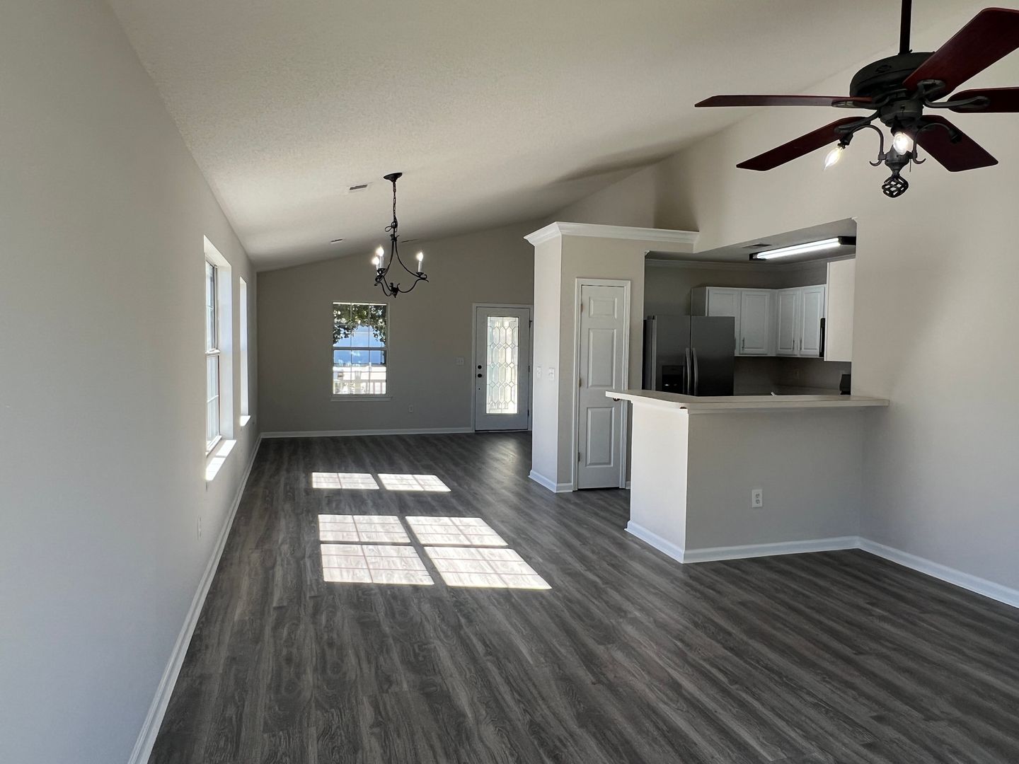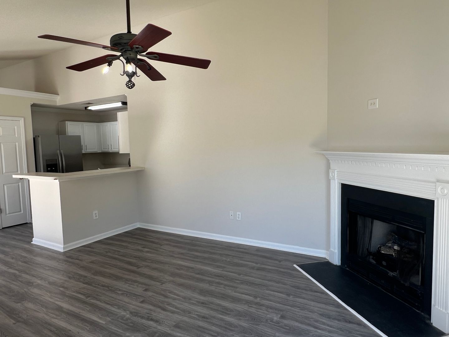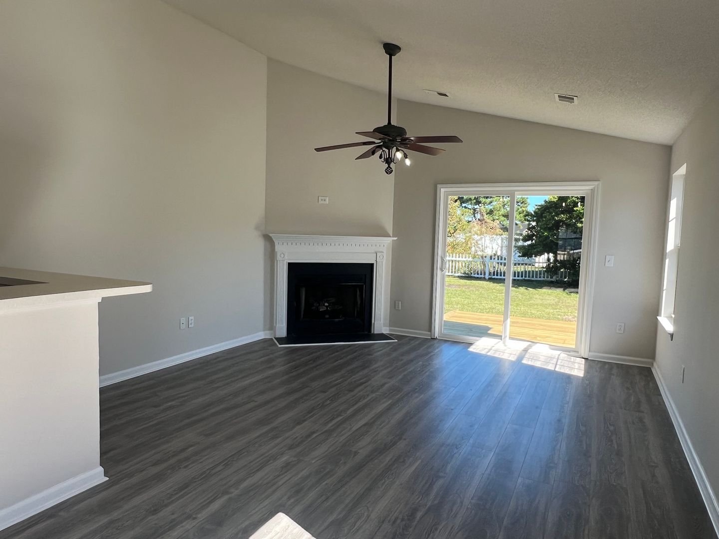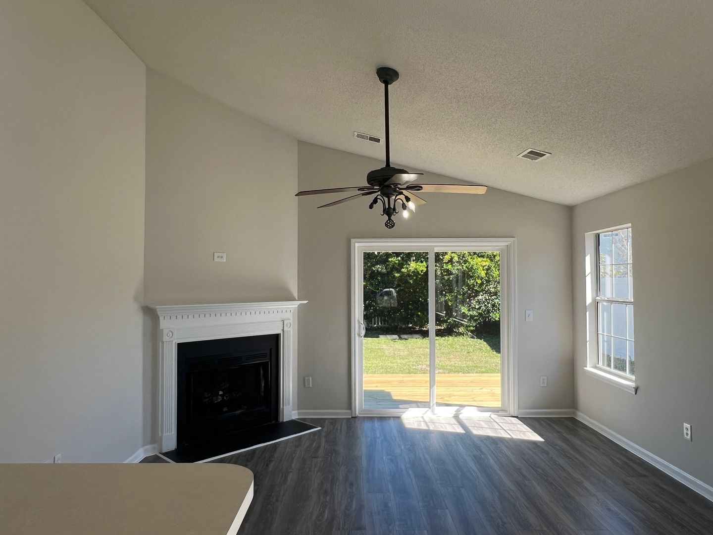 Pet friendly! Fabulous unfurnished, three-bedroom, two-bathroom home is located in the Southgate community of Carolina Forest. This charming home has vaulted ceilings throughout the living room, dining room, and primary bedroom. It features an open floor plan with beautiful, hard-surface flooring throughout the home. Kitchen includes stainless-steel stove, side-by-side refrigerator, over-the-range microwave, and dishwasher. There is a pantry closet for extra storage. A breakfast bar can provide extra seating in addition to the separate dining area. The living room has a corner gas fireplace with mantle, large window, and sliding glass door leading out to the wood deck. The fenced-in backyard is perfect since the home is pet-friendly. Primary bedroom has corner windows and a vaulted ceiling. Washer/dryer hookups are provided. Two-car garage provides storage for all your extra equipment. Amenities include an outdoor community pool, playground, and picnic area. Home is approximately 1,445 sq ft and is ready for you to move-in now!