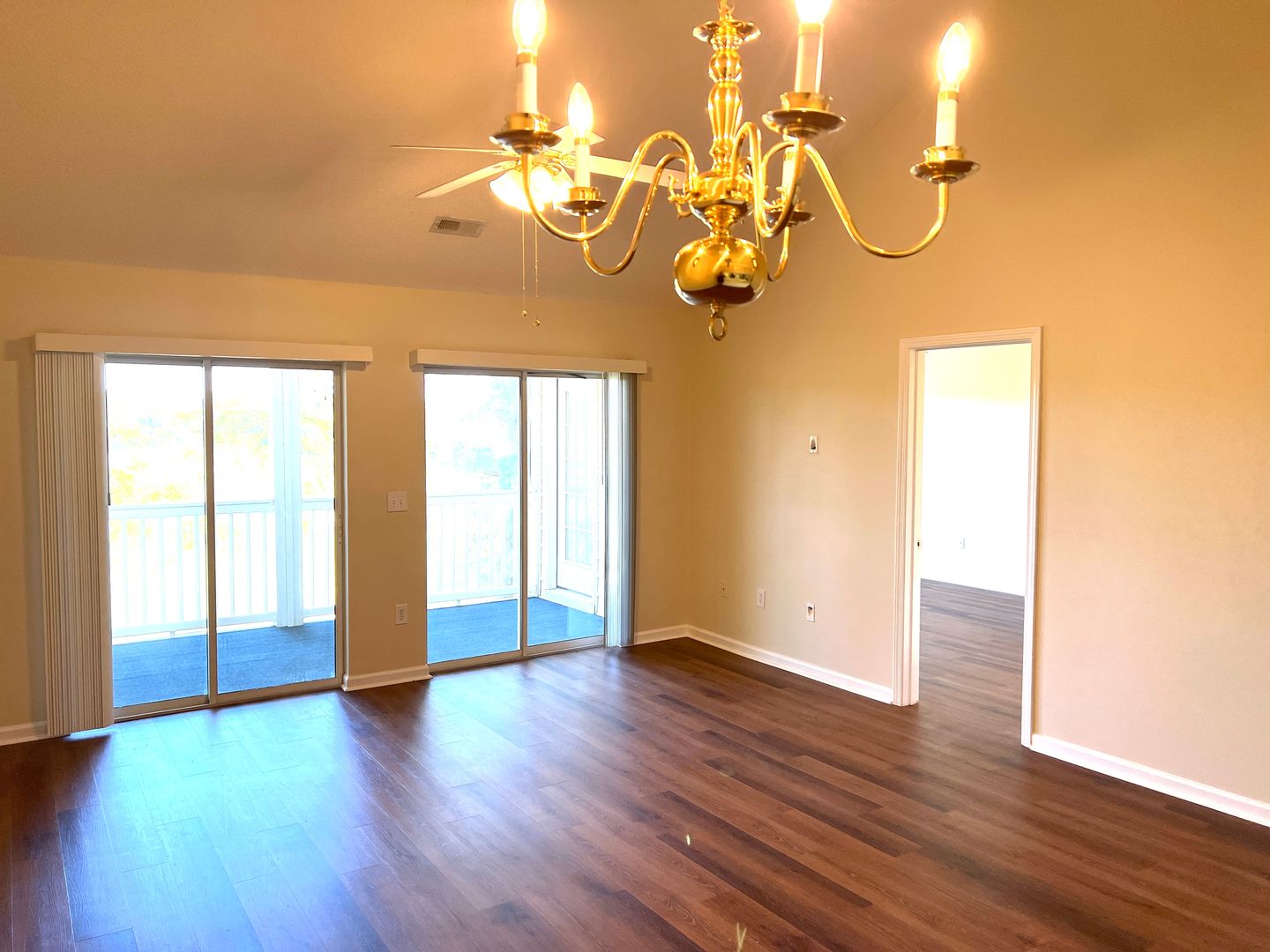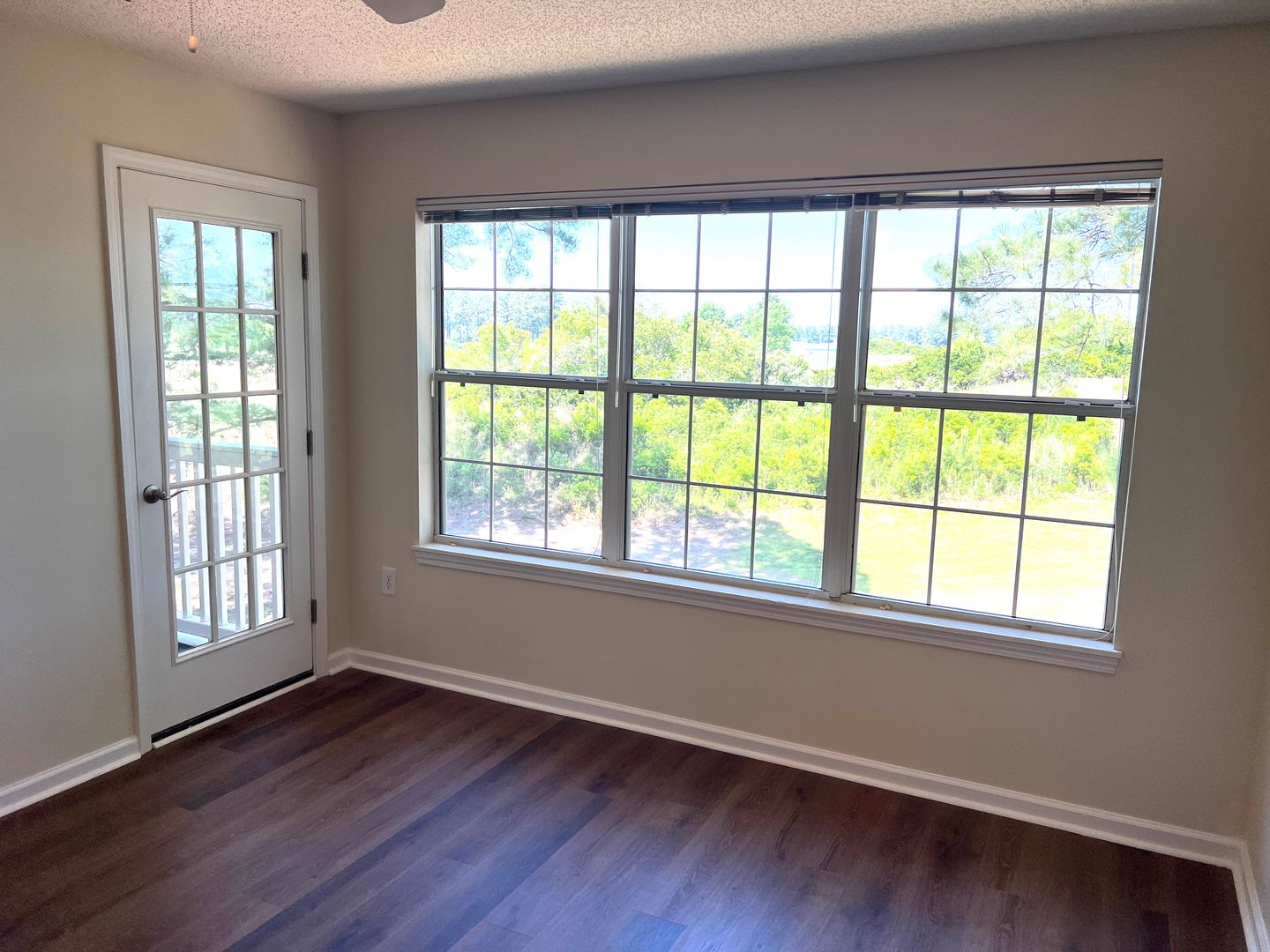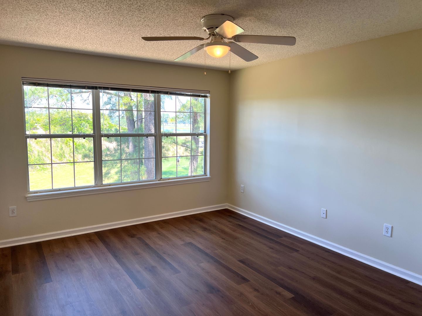 Enjoy relaxing with a beverage on the huge screened in porch while taking in nature and the quiet of a golf course. The three-bedroom, two-bathroom condo is located in the Carolina Forest community of Windsor Green and amenities include an outdoor pool, clubhouse, and playground. Located on the third floor, this condo offers vaulted ceilings in the living room and dining area. The galley-style kitchen is equipped with stainless-steel appliances including stove, refrigerator, over-the-range microwave, and dishwasher. LVP flooring has just been installed in the condo. The main living space is bright, open, and inviting with double glass doors to the porch, which is also accessible from the primary bedroom. The split floor plan separates the primary bedroom and private bathroom from the guest bedrooms and full bathroom. Guest bedrooms are located on each side of the entryway of the unit as well as the guest bathroom which has a step-in shower. Laundry room includes a washer and dryer that are provided as-is. The landlord is offering one-month free with an eighteen-month lease. A twelve-month lease is also available.