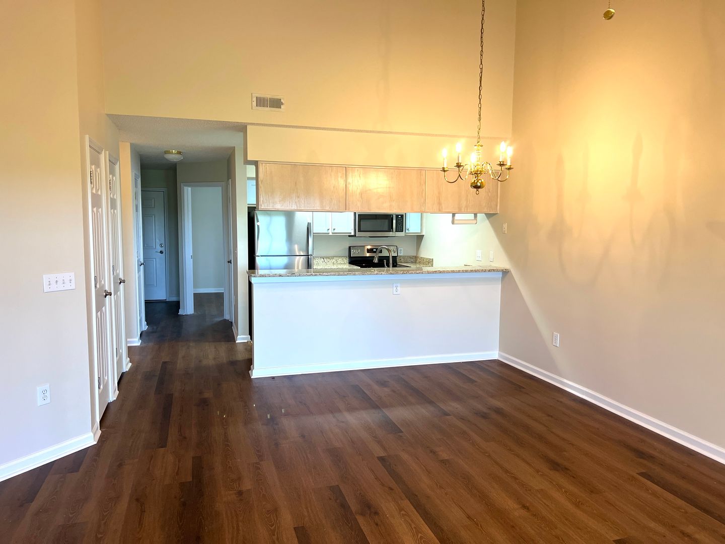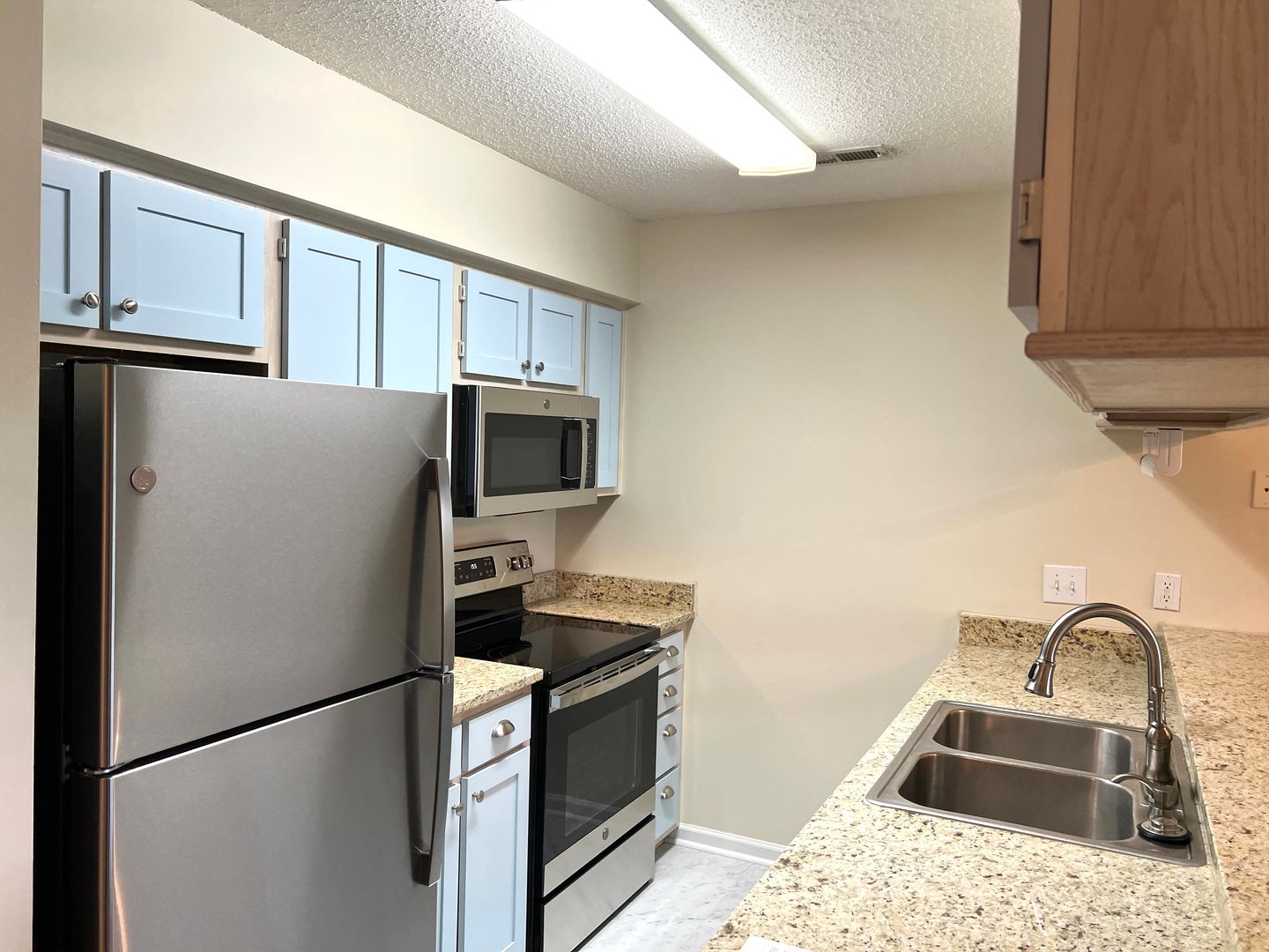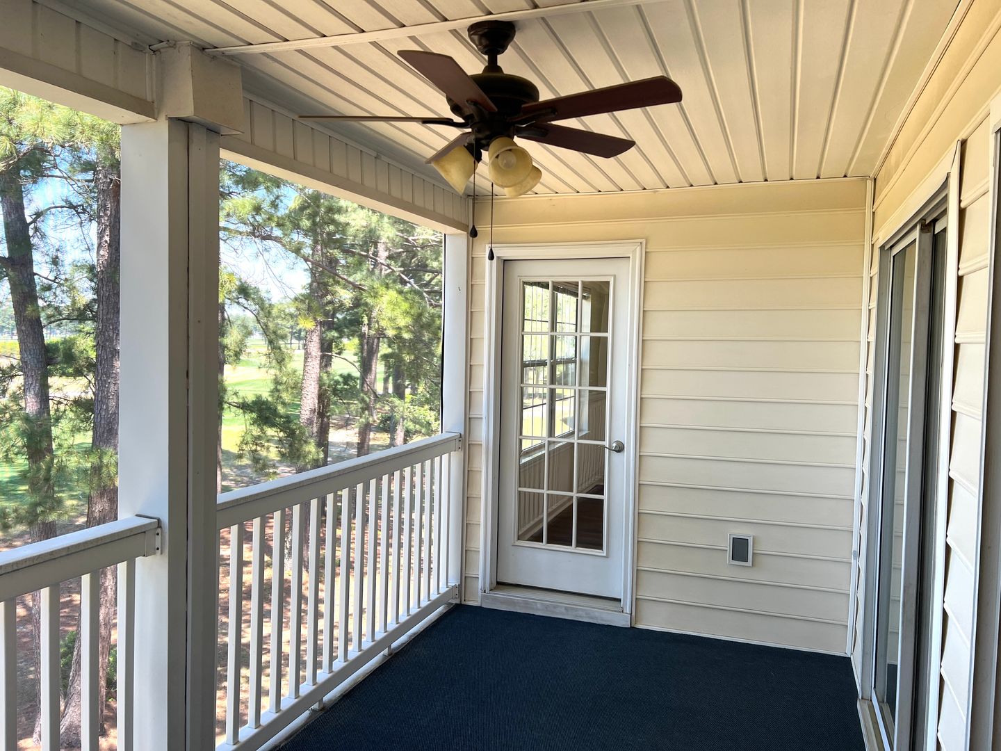 Enjoy relaxing with a beverage on the huge screened in porch while taking in nature and the quiet of a golf course. The three-bedroom, two-bathroom condo is located in the Carolina Forest community of Windsor Green and amenities include an outdoor pool, clubhouse, and playground. Located on the third floor, this condo offers vaulted ceilings in the living room and dining area. The galley-style kitchen is equipped with stainless-steel appliances including stove, refrigerator, over-the-range microwave, and dishwasher. LVP flooring has just been installed in the condo. The main living space is bright, open, and inviting with double glass doors to the porch, which is also accessible from the primary bedroom. The split floor plan separates the primary bedroom and private bathroom from the guest bedrooms and full bathroom. Guest bedrooms are located on each side of the entryway of the unit as well as the guest bathroom which has a step-in shower. Laundry room includes a washer and dryer that are provided as-is. The landlord is offering one-month free with an eighteen-month lease. A twelve-month lease is also available.